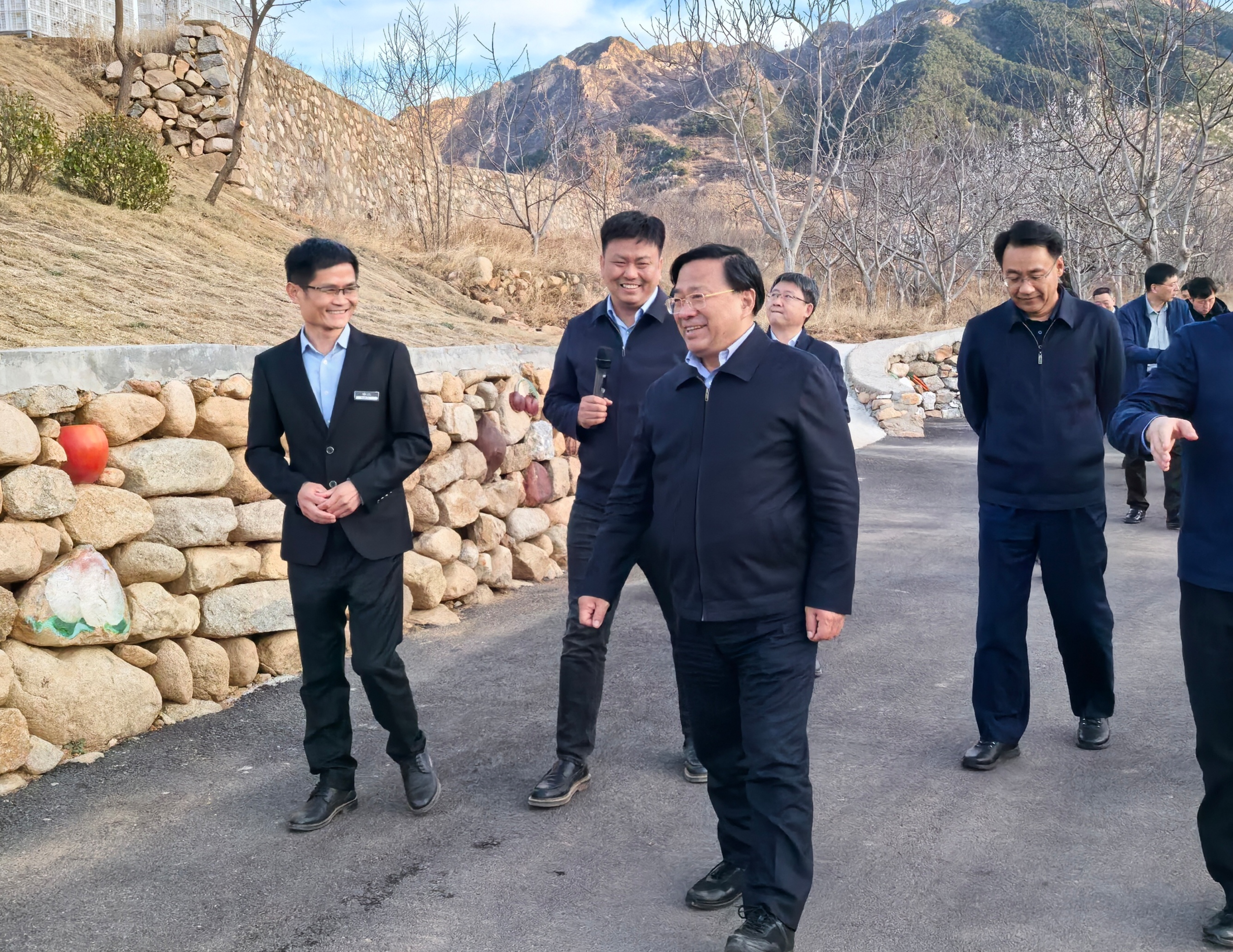 北京正大畜禽科技有限公司创新政府、金融机构、龙头企业、合作组织“四位一体”模式,解决农民缺资金、缺技术、缺市场问题,通过规模化蛋鸡养殖示范,带动1600多农户户均分红4万多元。韩俊察看家禽设施养殖情况,对公司联农带农模式予以肯定,强调要认真总结“四位一体”模式的创新性经验,积极探索乡村产业发展中多方共赢、引领农民实现共同富裕的路子。在优山美地樱桃园,韩俊实地察看园区建设,了解设施园艺发展情况。他强调,要大力发展现代设施农业、乡村特色产业,让农民更多分享产业发展红利。