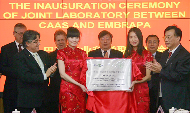 4月13日,中国—巴西农业科学联合实验室揭牌仪式在中国农业科学院举行。这是我国面向拉美国家的第一个农业科学联合实验室。成立该实验室,旨在有效利用和发挥中国农业科学院和巴西农牧研究院的各自科技优势,推动双方在农业和自然资源领域的科技合作,促进加速相关技术成果的转化应用和产业化,提升双方在农业生物技术领域的国际地位和影响,促进两国农业可持续发展,并为保障中国、巴西及其他发展中国家的农业粮食安全、提高经济效益做出贡献。